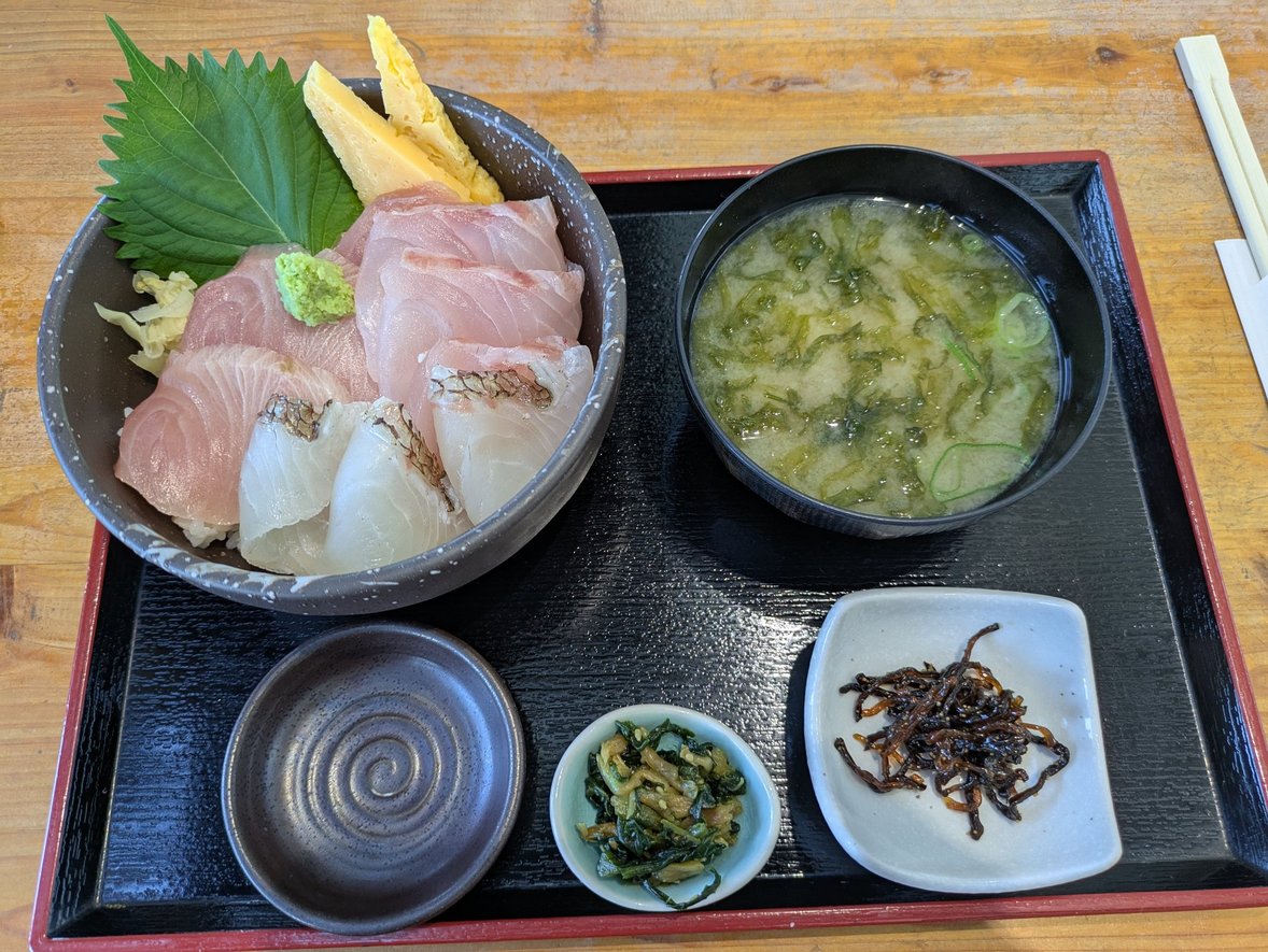 値段は少し高めですが、地魚三種丼2,400円にしました。味はしっかり魚の味が楽しめるので、ゆっくり座って食べるなら、こちらがお奨め。