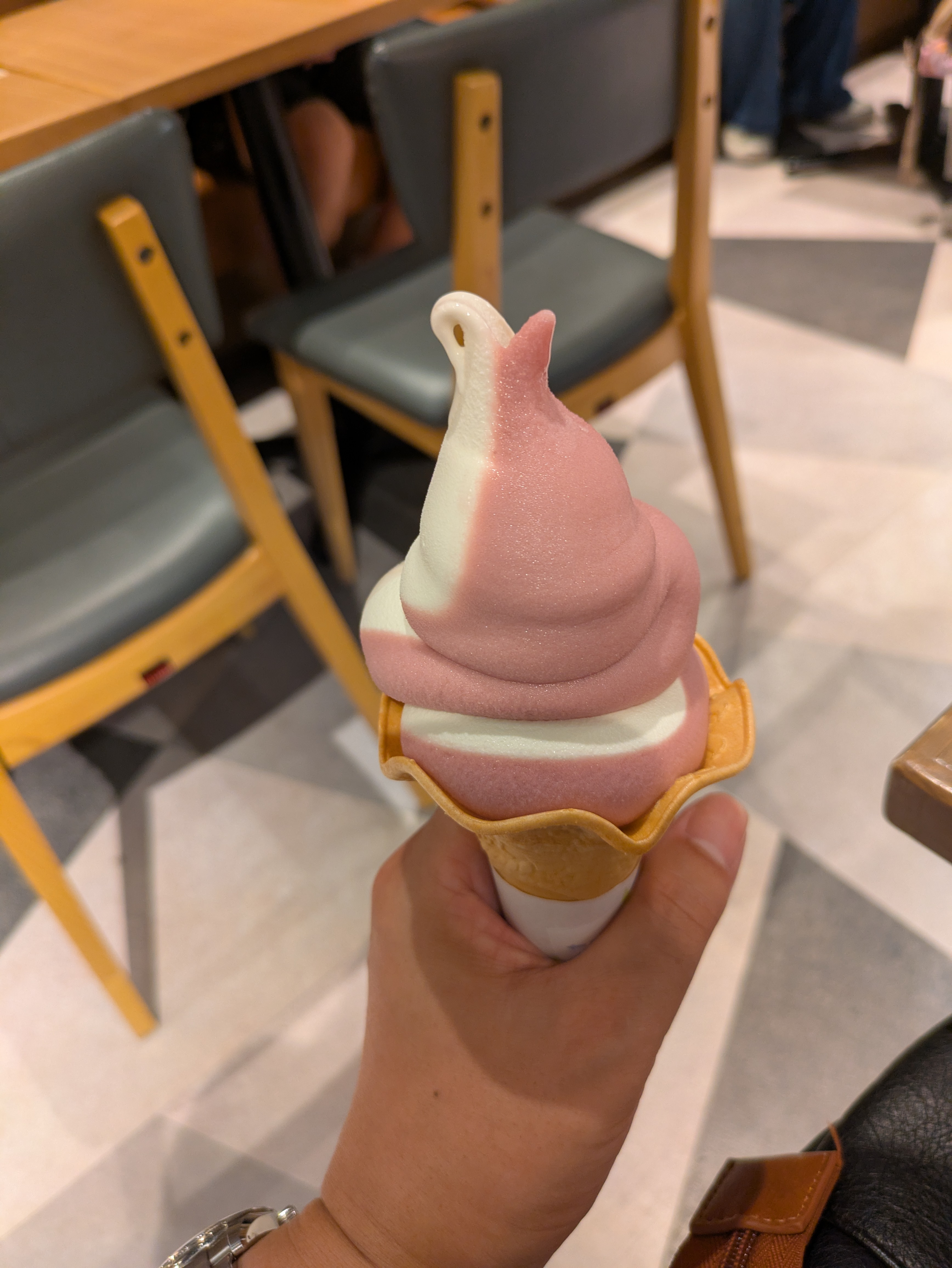 ミナカに新城下町というのがあり、食事するところがたくさんありました。お腹いっぱいだったのでソフトクリームだけでしたが、お土産屋もあり、最後に立ち寄るのは良い場所でした。