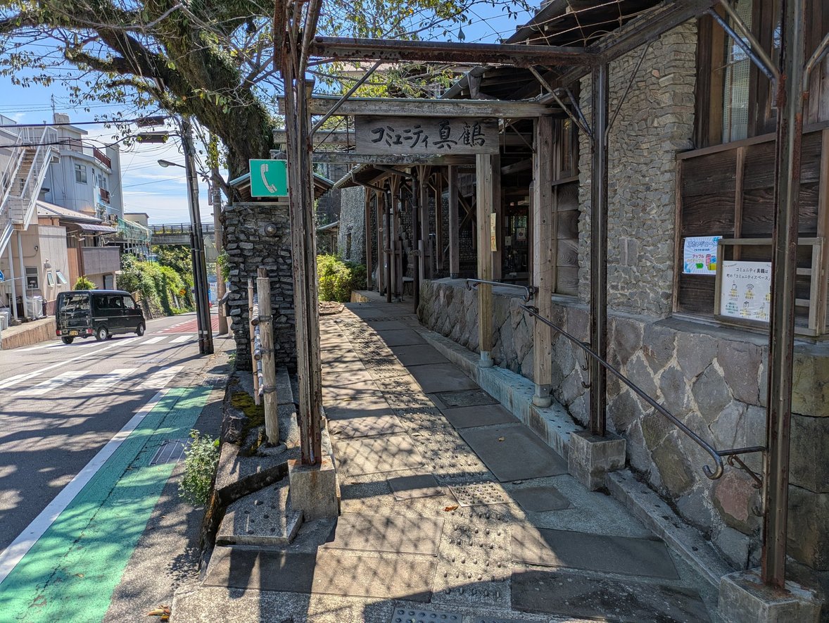 JR真鶴駅を降りて左手へ。特に商店街があるわけでもなく、漁村というか昭和というか。