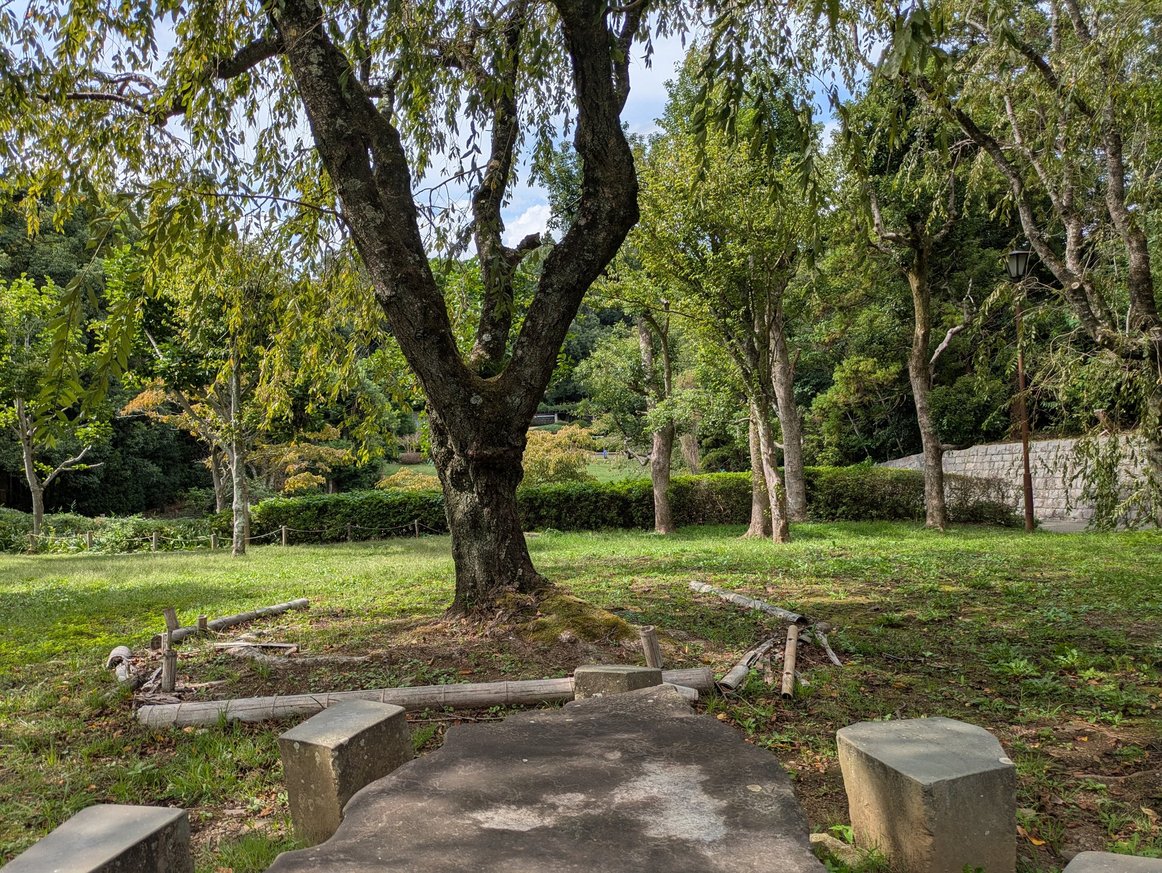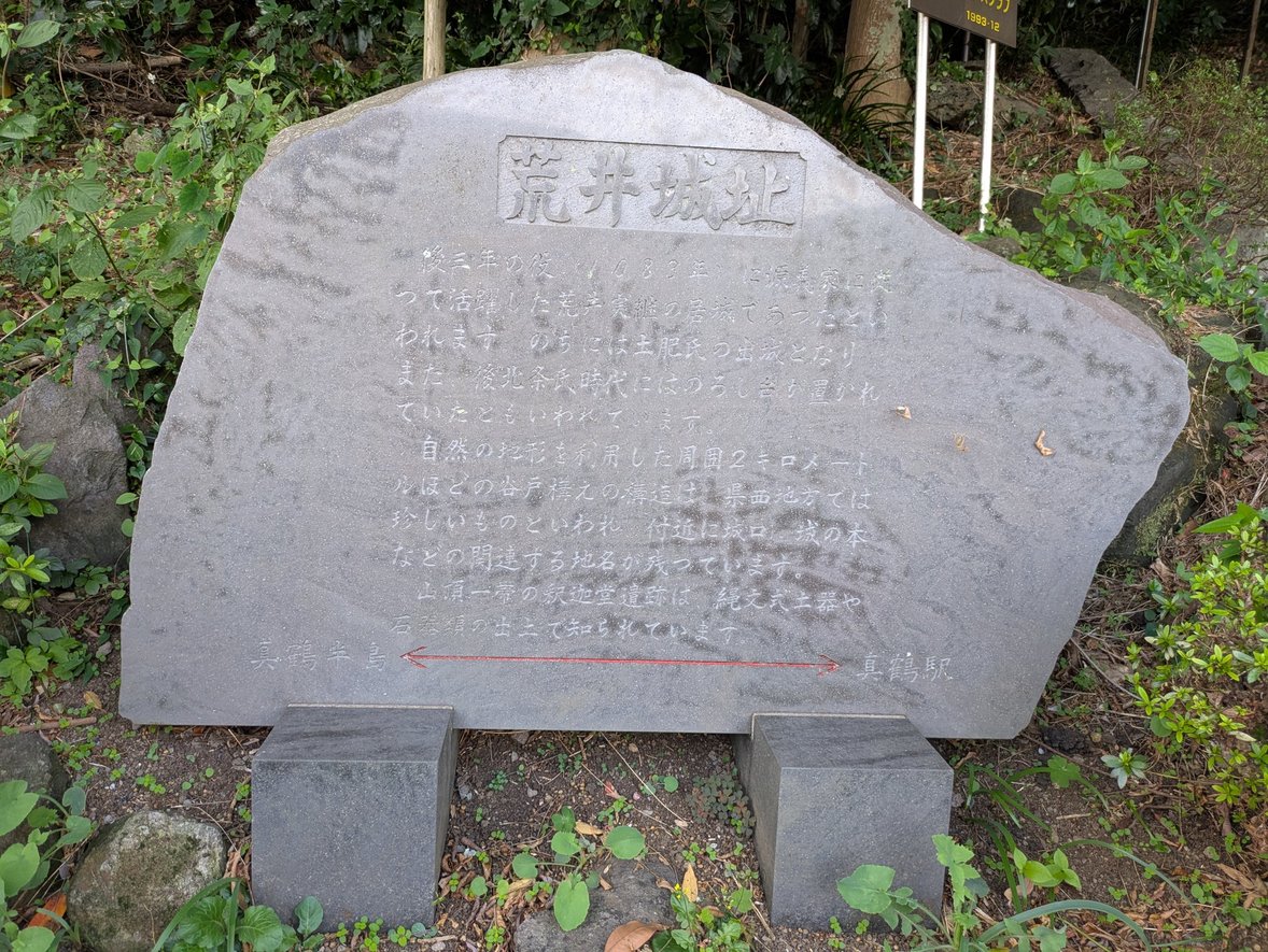 最後の目的地は荒井城址公園。山城で空堀の跡らしきものはありましたが、今はすっかり公園になっていてサッカーができるくらいの広場もありました。